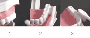 1. 刷毛和牙呈 45 度朝向牙龈;